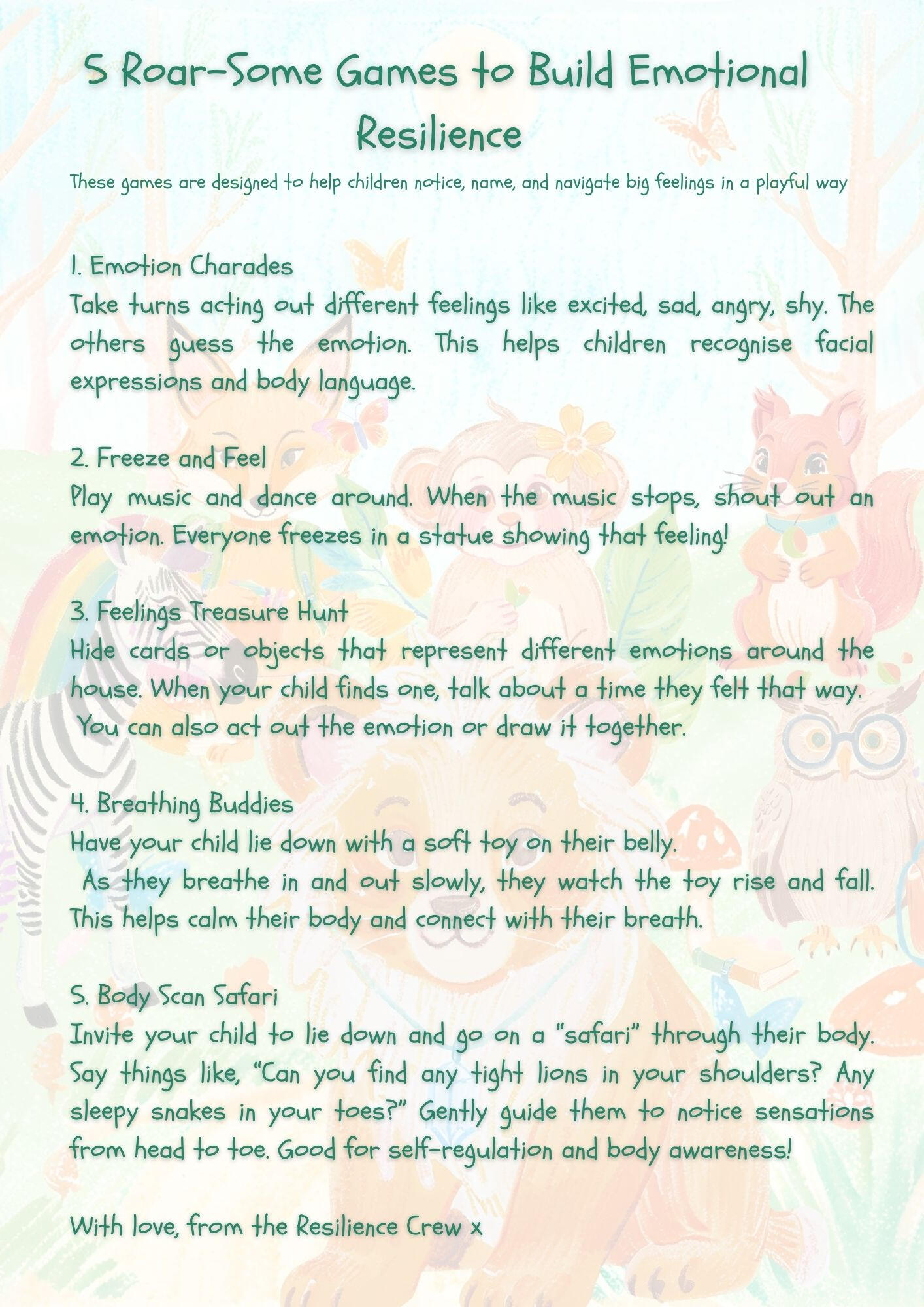Welcome to Sunny Hollow!In the heart of a magical forest, where the trees sparkle and streams hum gentle tunes, lies Sunny Hollow – a place full of wonder and friendship. This is where The Resilience Crew lives, a team of best friends who love adventures, laughter, and learning how to tackle big feelings together. No matter what challenges they face, The Resilience Crew is always there to help each other, and now they’re so excited to meet you!